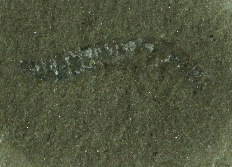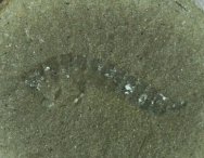 Dasyleptus spClass Insecta, Subclass Apterygota, Order Monura, Family Dasyleptidae Geological Time: Pennsylvanian Westphalian Stage (~300 m.y.a.) Size (25.4 mm = 1 inch): Fossil is 25 mm (curve measure) on a 33 mm by 37 mm nodule pair Fossil Site: Mazon Creek, Francis Creek shale, Braidwood, Illinois Code: HMC25 Price: Sold |