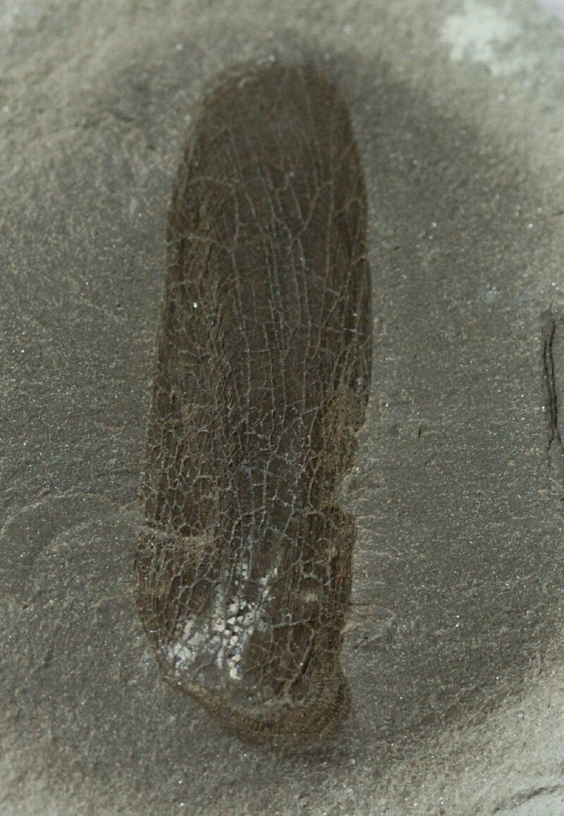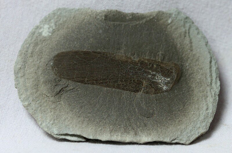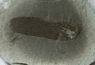 Sagenodus (Ctenodus) spClass Sarcopterygii, Subclass Dipnoi Geological Time: Pennsylvanian (~300 million years ago) Size (25.4 mm = 1 inch): Fossil is 35 mm long by 9 mm wide on a 53 mm by 34 mm nodule half Fossil Site: Mazon Creek, Francis Creek Shale, Pit 11, Braidwood, Illinois Code: AW68 Price: Sold |