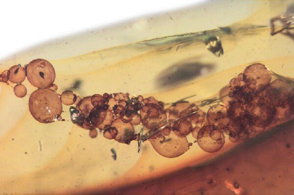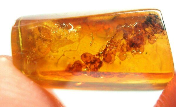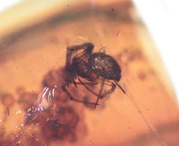 Fossil AmberArachnida, Araneae Geological Time: Oligocene-Miocene Size (25.4mm = 1 inch): Amber: 12 mm long, 8 mm across, Inclusion: 3 mm Fossil Site: Region near Santiago, Dominican Republic Code: DA4009 Price: $95.00 - sold