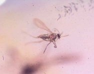 Fossil AmberInsect Order Hymenoptera, Familiy Bethylidae Insect Order Diptera, Family Cecidomyiidae Geological Time: Oligocene-Miocene Size (25.4mm = 1 inch): Amber: 9 mm long , 6 mm across , Inclusions: 1 mm Fossil Site: Region near Santiago, Dominican Republic Code: DA3032 Price: Sold