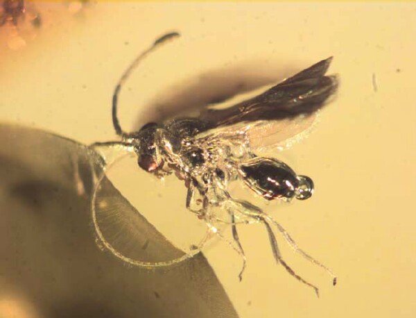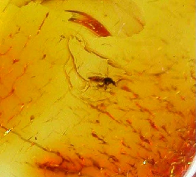 Fossil AmberWasp: Insect Order Hymenoptera, Family Braconidae Midge: Insect Order Diptera, Family Ceratopogonidae Geological Time: Upper Eocene - Lower Oligocene Size (25.4mm = 1 inch): Amber 30 mm long, 30 mm across, Inclusions 3 mm & 1 mm Fossil Site: Kaliningrad District, Russia Code: BA4011 Price: $50.00 - sold