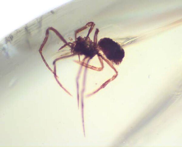Fossil AmberSpider: Arachnida, Araneae Geological Time: Miocene - Oligocene Size (25.4mm = 1 inch): Amber: 13 mm long, 13 mm across; Inclusions 1-2 mm Fossil Site: Region near Santiago, Dominican Republic Code: DA3026 Price: $40.00 - sold