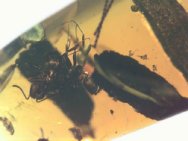 Fossil AmberInsect Order Blattodea Insect Order Hymenoptera, Family Formicidae Geological Time: Miocene - Oligocene Size (25.4mm = 1 inch): Amber: 20 mm long, 10 mm across, Inclusions:1- 3 mm Fossil Site: Region near Santiago, Dominican Republic Code: DA4014 Price: Sold |