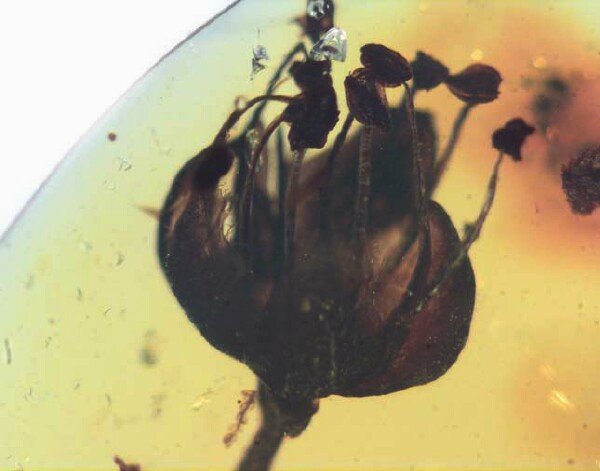 Fossil AmberAngiosperm, Order Fabales, Family Fabaceae Geological Time: Miocene - Oligocene Size (25.4mm = 1 inch): Amber: 9 mm long, 10 mm across Inclusion 5 mm with stem Fossil Site: Region near Santiago, Dominican Republic Code: DA6005 Price: Sold |