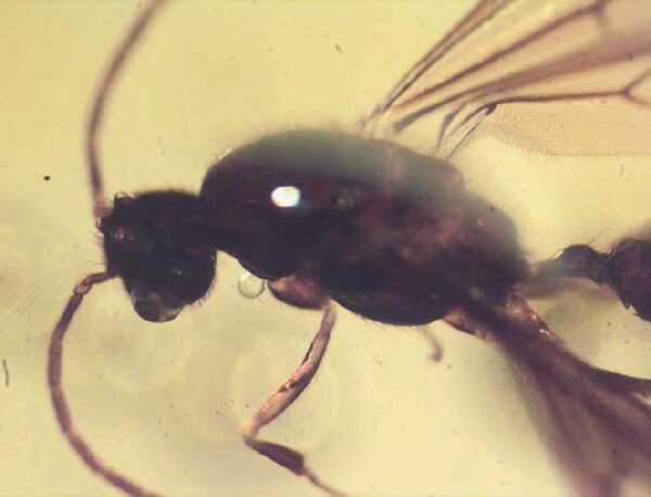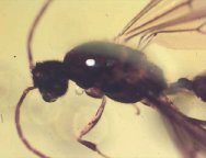 Fossil Amber Winged AntInsect Order Hymenoptera, Family Formicidae Geological Time: Oligocene-Miocene Size (25.4mm = 1 inch): Amber: 20 mm long , 10 mm across, Inclusion: 4 mm Fossil Site: Region near Santiago, Dominican Republic Code: DA4015 Price: Sold |