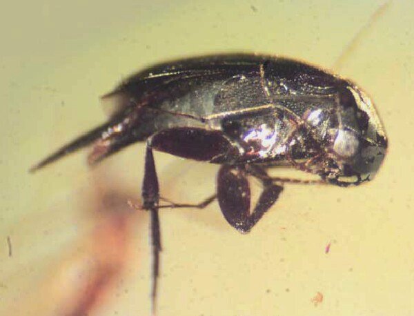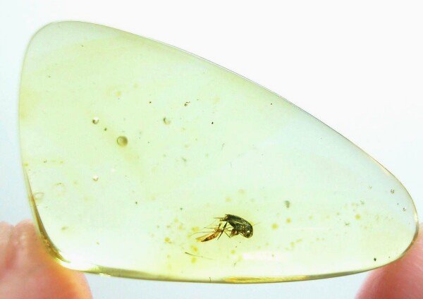 Insect Order Coleoptera, Family Mordelliidae Geological Time: Upper Eocene - Lower Oligocene Size (25.4mm = 1 inch): Amber 21 mm long, 11 mm across, Beetle and Midge: 1 mm EACH Fossil Site: Kaliningrad District, Russia Code: BA45004 Price: $65.00 - sold