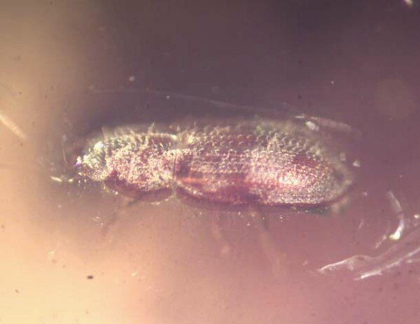 Fossil AmberBeetle: Insect Order Coleoptera, Familiy Cupedidae Geological Time: Oligocene-Miocene Size (25.4 mm = 1 inch): Amber: 15 mm long, 11 mm across, Inclusion: 2 mm Fossil Site: Region near Santiago, Dominican Republic Code: DA4007 Price: Sold |