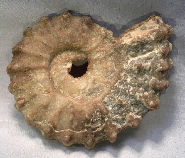 | Mammites nodosoidesOrder Ammonoidea, Family Acanthroceratidae Geological Time: Early Cretaceous, Turonian Stage (~93 million years ago) Size (25.4 mm = 1 inch): Ammonite fossil is 130 mm across Fossil Site: Zagora / Dakhla, Moroccoo Fossil Code: 11015 Price: $175.00 - sold |