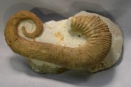 Ancyloceras (Audoliceras) sp.Order Ammonoidea, Family Pleuroceratidae Geological Time: Early Cretaceous, Barremian Stage (~115 million years ago) Size (25.4 mm = 1 inch): Ammonite is 103 mm long on a 100 mm by 60 mm matrix Fossil Site: Immouzar, Agadir, Morocco Fossil Code: 11008 Price: Sold |