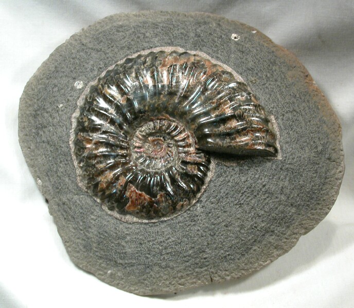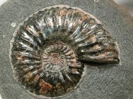 Deshayesites deshaysiiAmmonoidea, Deshayesitidae Geological Time: Middle Cretaceous, Aptian Stage Size (25.4 mm = 1 inch): 100 mm across on a 165 mm by 145 mm matrix Fossil Site: Volga River, Russia Fossil Code: RA378 Price: $195.00 - sold |