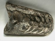Rayonnoceras solidiformeNautiloidea, Actinoceratida, Carbactrinoceratidae Age: Mississippian Size (25.4mm=1 inch): 75 mm long, 45 mm across living chamber, up to 12 mm thick Location: Fayetteville Shale, White County, Arkansas Code: ARC4 Price: $65.00 - sold |