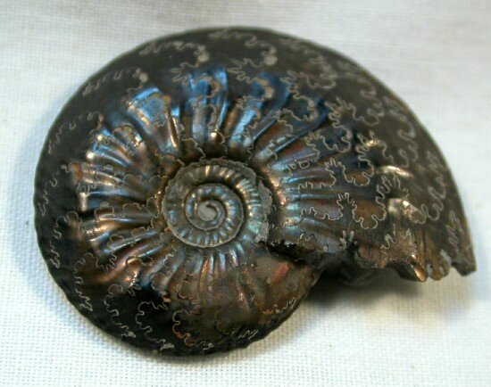 | Name: Ammonoidea: Oxynoticeratidae: Oxynoticeras oxynotum Age: Jurassic , Lower Lias, Sinemurian Stage (~185 Million Years Ago) Size (25.4 mm = 1 inch): 30 mm diameter Location: Bishops Cleve, Cheltenham, United Kingdom Code: 8166 Price: $50.00 - Sold