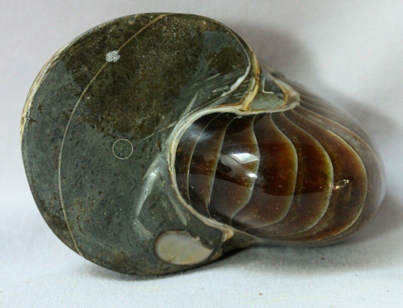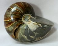 Cymatoceras sakalavusPhylum Mollusca, Class Cephalopoda, Subclass Nautiloidea, Order Nautilida, Family Cymatoceratidae Geological Time: Middle Cretaceous, Albian Stage (112 mya) Size (25.4 mm = 1 inch): Fossil is 64 mm across (maximum), 48 mm across living chamber Fossil Site: Mahajanga, Madagascar Code: PP23 Price: Sold |