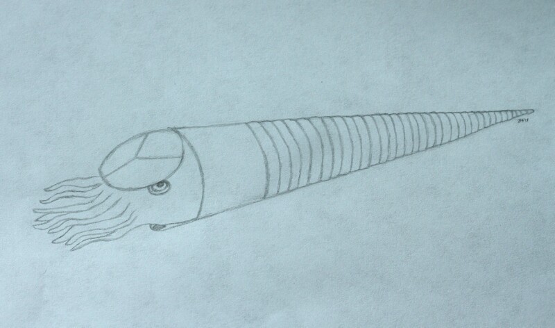 Nautiloidea indetClass Cephalopoda, Subclass Nautiloidea Geological Time: Ordovician Size (25.4 mm = 1 inch): Orthocone fossil is 20 mm long by 15 mm wide on a 90 by 50 mm matrix Operculum: 15 mm by 12 mm on an 80 mm by 60 mm matrix Fossil Site: Jebel Ougnat, Morocco Fossil Code: 13110 Price: Sold |