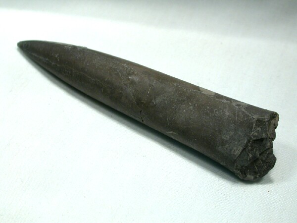 Cylindroteuthis puzosianaBelmnoidea Geological Time: Middle Jurassic, Lower Lias, Sinemurian Stage Size (25.4 mm = 1 inch): Fossil is 100 mm long, up to 23 mm across Fossil Site: Whitby, North Yorkshire, England Code: AAF365 Price: Sold |