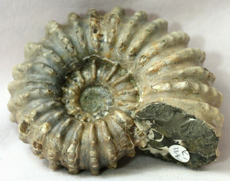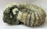 Douvilleiceras mammilatumOrder Ammonoidea Geological Time: Upper Early Cretaceous, Albian Stage Size (25.4 mm = 1 inch): Ammonite fossil is 75 mm diameter, 35 mm across living chamber Fossil Site: Mahajanga Province, Madagascar Fossil Code: AM017 Price: Sold |