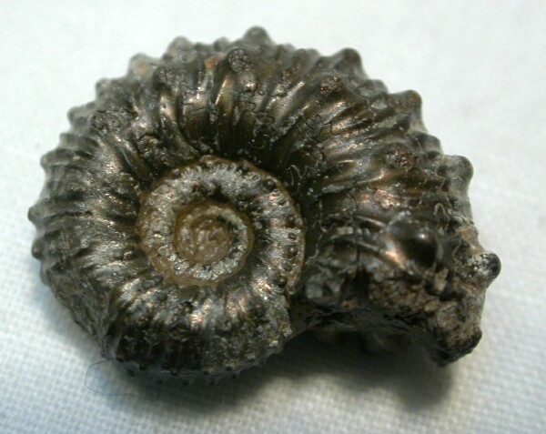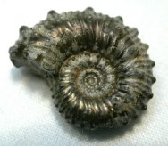 | Name: Kosmoceras spinosum Geologic Time: Jurassic, Oxfordian Stage Size (25.4 mm = 1 inch): 18 mm diameter Fossil Site: Oxford Clay, City of Oxford, England Fossil Code: AAF373 Price: $40.00 - sold