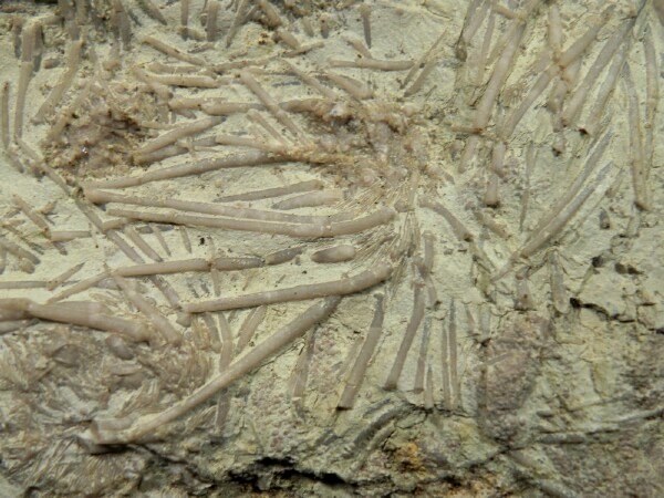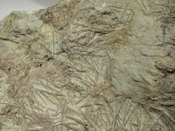 Archaeocidaris aliquantulaEchinodermata, Echinoidea, Archaeocidaridae Geological Time: Lower Carboniferous, Mississippian Size (25.4 mm = 1 inch): Matrix is 200 mm by 120 mm Fossil Site: Gilmore City Formation, Gilmore City, Iowa Fossil Code: AW12 Price: $275.00 |