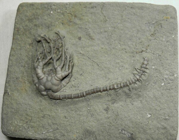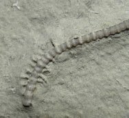 Cyathocrinites harrodiInaudinata, Cladida, Family Cyathocrinitidae Geological Time: Lower Mississippian Osagean Stage (345 m.y.a) Size (25.4 mm = 1 inch): Crinoid crown: 30 mm long by 18 mm wide Stem: 57 mm on a 68 mm by 82 mm matrix Fossil Site: Crawfordsville, Indiana Code: CK34 Price: $165.00 - sold |