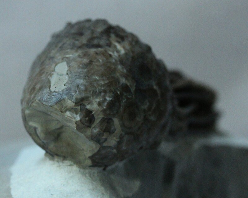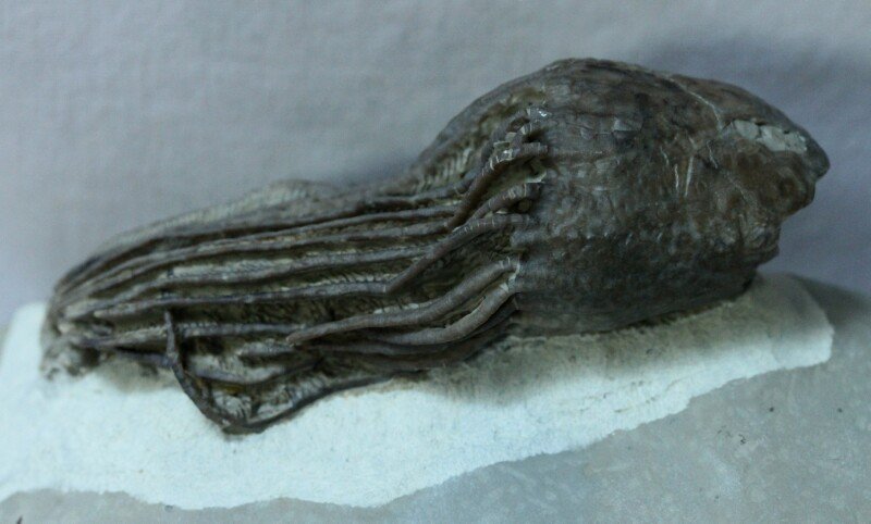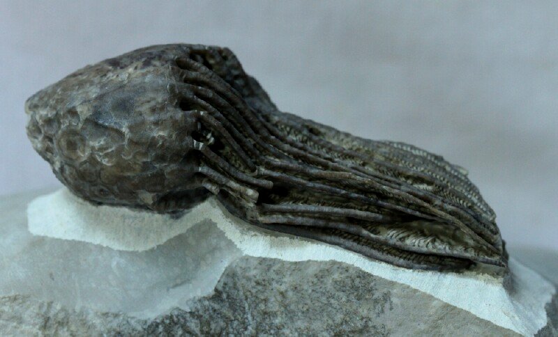 Bucucrinus saccusCamerata, Family Rhodocrnitidae Geological Time: Early Silurian (~435 Million Years Ago) Size (25.4 mm = 1 inch): Crinoid fossil is 85 mm long by 28 mm across by 25 mm high (maximum) on a 120 mm by 95 mm matrix Fossil Site: Goeland Formation, Sept Iles, Quebec, Canada Fossil Code: MMT180 Price: Sold |