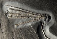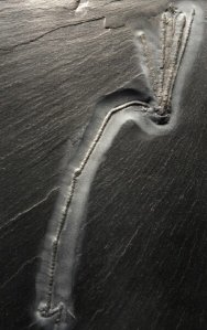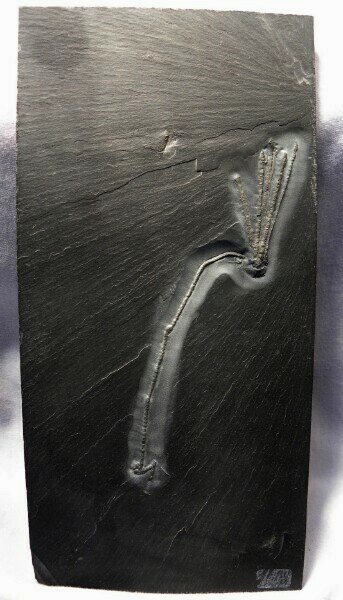 Triacrinus spPhylum Echinodermata, Phylum Echinodermata, Subphylum Crinozoa, Class Crinoidea, Subclass Disparida (Order Uncertain) Geological Time: Lower Devonian, Seigenian/Emsian Stage Size (25.4 mm = 1 inch): Crinoid calyx is 48 mm tall by 25 mm wide, with 100 mm stem on a 210 by 100 mm matrix Fossil Site: Hunsrück Slate, Bundenbach, Germany Fossil Code: GF043 Price: Sold |