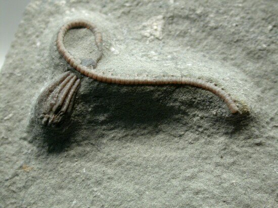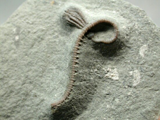Camptocrinus crawfordsvillensisCamerata, Family Dichocrinidae Geological Time: Lower Mississippian Osagean Stage (345 m.y.a) Size (25.4 mm = 1 inch): Camptocrinus crawfordsvillensis crown: 10 mm long 7 mm across with a 50 mm stem on a 65 by 62 mm matrix Fossil Site: Crawfordsville, Indiana Famous Crawfordsville Crinoids Code: CK025 Price: $95.00 - sold |