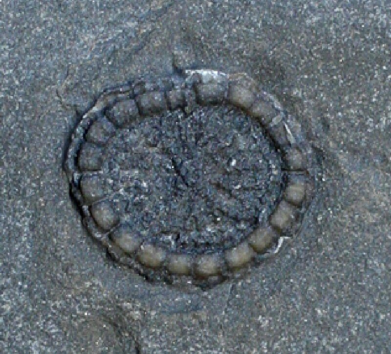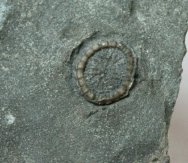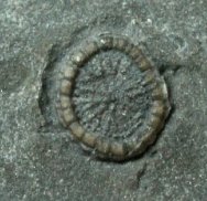 Cyclocystoides spPhylum Echinodermata, Class Cyclocystoidea, Order Cyclocystoididae Geological Time: Middle Ordovician Size (25.4 mm = 1 inch): Fossil is 7 mm by 6 mm Matrix: 50 mm by 40 mm Fossil Site: Sugar River Formation, Trenton Group, Sackets Harbor, New York Fossil Code: MMT128 Price: $135.00 - sold |