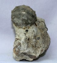 Gymnocidaris spPhylum Echinodermata, Subphylum Echinozoa, Class Echinoidea, Family Hemicidaridae Geological Time: Middle Jurassic Size (25.4 mm = 1 inch): Echinoid fossil is 30 mm diameter, 15 mm high on a 60 mm by 40 mm by 35 mm tall matrix Fossil Site: Terrieute, Teruel, Spain Fossil Code: 10834 Price: $125.00 |