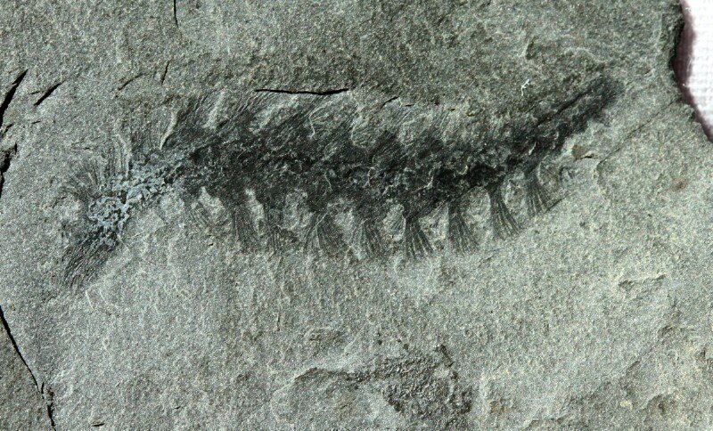 Burgessochaeta setigeraPhylum Annelida, Order Burgessochaetidae Geological Time: Early Cambrian, (~520 million years ago) Size (25.4 mm = 1 inch): Fossil is 32 mm long (curve measure) on a 65 mm by 85 mm matrix Fossil Site: Stephen Formation, Burgess Shale, Burgess Pass, British Columbia, Canada Fossil Code: JH31 Price: $2595.00 - sold |