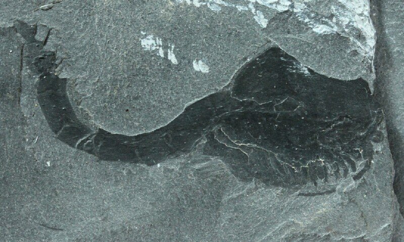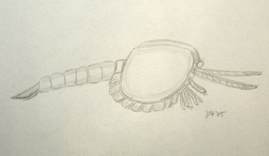 Waptia fieldensisPhylum Arthropoda Geological Time: Early Cambrian, (~520 million years ago) Size (25.4 mm = 1 inch): Fossil is 52 mm long (curve measure) Shell: 18 mm long by 11 mm wide on a 70 mm by 90 mm matrix Fossil Site: Stephen Formation, Burgess Shale, Burgess Pass, British Columbia, Canada Fossil Code: JH35 Price: $2195.00 - sold |