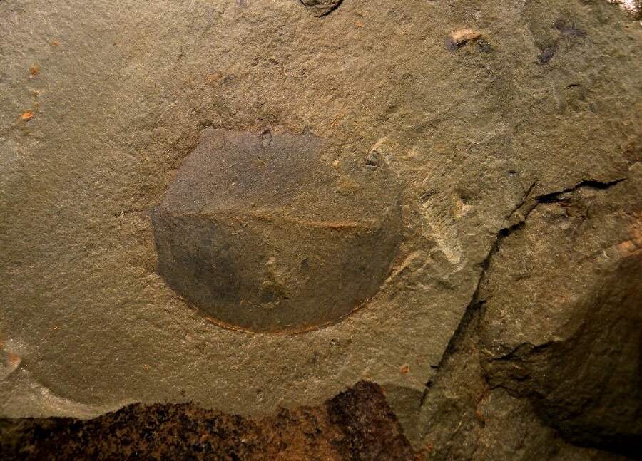 Tuzoia spPhylum Arthropoda, Subphylum Crustacea, Class Malacostraca, Subclass Phyllocaridae Geological Time: Early Middle Cambrian, (~525 million years ago) Size (25.4 mm = 1 inch): Fossil is 50 mm long by 40 mm across on a 175 mm by 150 mm and 145 mm by 105 mm matrix Fossil Site: Comet Shale Member, Pioche Formation, Lincoln County, Nevada Fossil Code: WF06 Price: $600.00 |