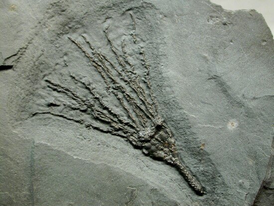 Gogia spiralisPhylum Echinodermata, Eocrinoidea Geological Time: Middle Cambrian Size (25.4 mm = 1 inch): Fossil is 59 mm long and 41 mm wide on a 128 mm by 115 mm matrix Fossil Site: Wheeler Formation, Millard County, Utah Fossil Code: EC048 Price: $75.00 - sold |