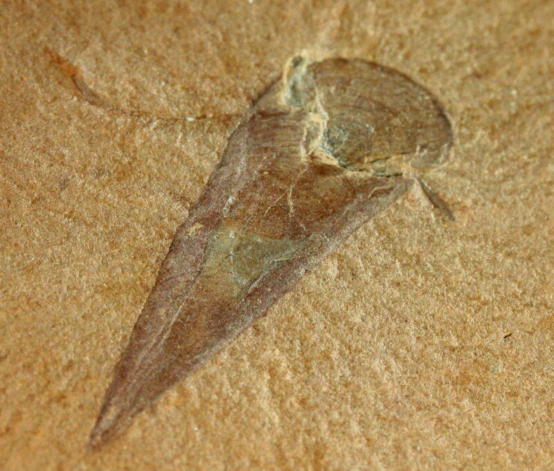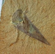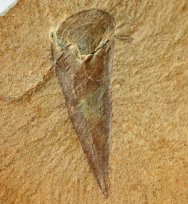 Haplophrentis carinatusPhylum Uncertain, Class Hyolitha, Order Hyolithida, Family Hyolithidae Geological Time: Early Cambrian, (~520 million years ago) Size (25.4 mm = 1 inch): Haplophrentis fossil is 20 mm long X 6 mm wide (plus helens) on a 135 mm by 95 mm matrix Fossil Site: Stephen Formation, Burgess Shale, Burgess Pass, British Columbia, Canada Fossil Code: JH30 Price: $650.00 - sold |