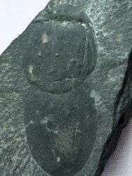 Naraoia compactaPhylum Arthropoda, Order Naraoiidae Geological Time: Early Cambrian, (~520 million years ago) Size (25.4 mm = 1 inch): Fossil is 32 mm long X 14 mm wide on a 64 mm by 30 mm matrix Fossil Site: Stephen Formation, Burgess Shale, Burgess Pass, British Columbia, Canada Fossil Code: JH36 Price: $1850.00 - sold |