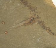 Emeraldella spLamellipedia (Trilobitomorpha), Emeraldellidae Geological Time: Early Middle Cambrian, (~525 million years ago) Size (25.4 mm = 1 inch): Fossil is 15 mm on a 140 mm by 90 mm and 100 mm by 80 mm matrix Fossil Site: Comet Shale Member, Pioche Formation, Lincoln County, Nevada Fossil Code: WF02 Price: Sold |