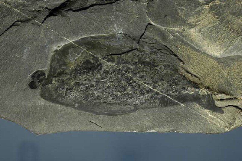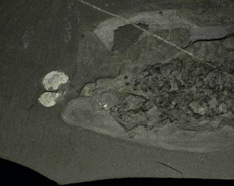 mm = 1 inch): Fossil is 76 mm overall including eyes, body 33 mm deep