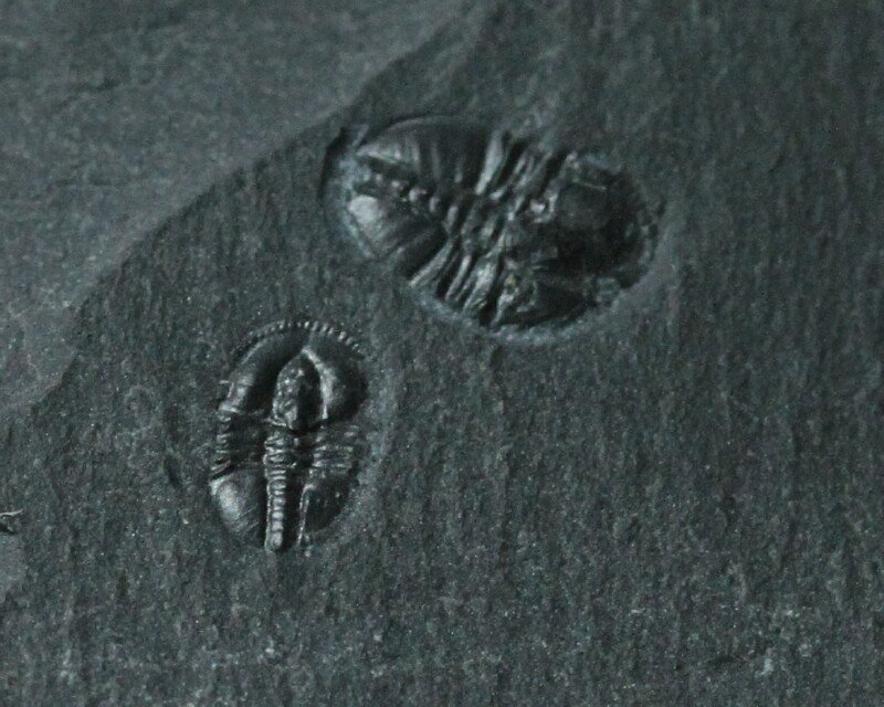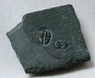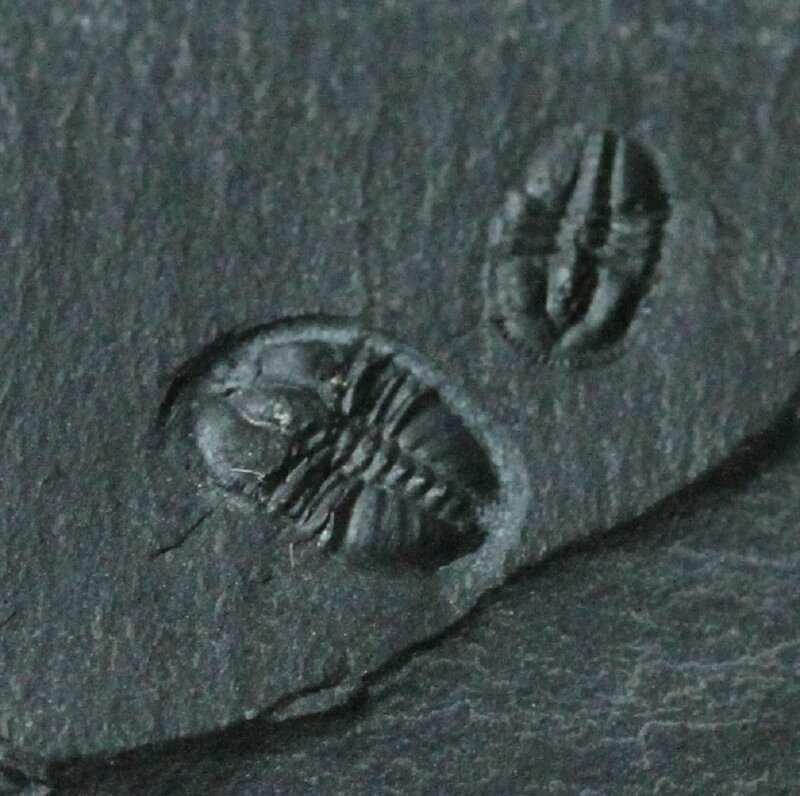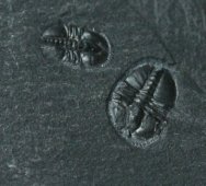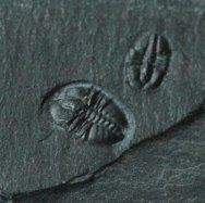 Pagetia bootesTrilobite Order Agnostida; Family Oryctocepalidae Geological Time: Early Cambrian, (~520 million years ago) Size (25.4 mm = 1 inch): Trilobites are 6 mm long X 4 mm wide and 4.5 mm long by 3 mm wide on a 23 mm by 20 mm matrix Fossil Site: Stephen Formation, Burgess Shale, Burgess Pass, British Columbia, Canada Fossil Code: JH44 Price: Sold |