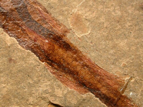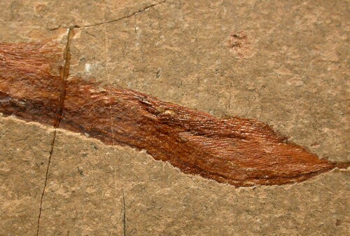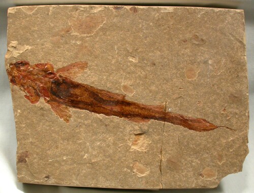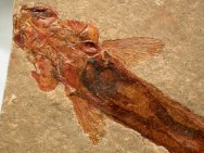 | Name: Chondrostei; Acipenseriformes; Peipaiosteus pani Age: Late Jurassic to Early Cretaceous Size (25.4 mm = 1 inch): 140 mm in length, 42 mm wide at the pectoral fins on a 158 mm by 118 mm matrix. Location: Yiaxian Formation, Beipiao City, Liaoning Province, China Code: 6983 Price: $175.00 - Sold |