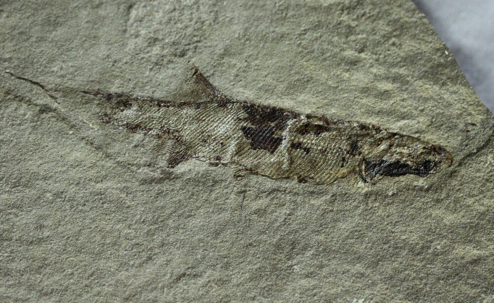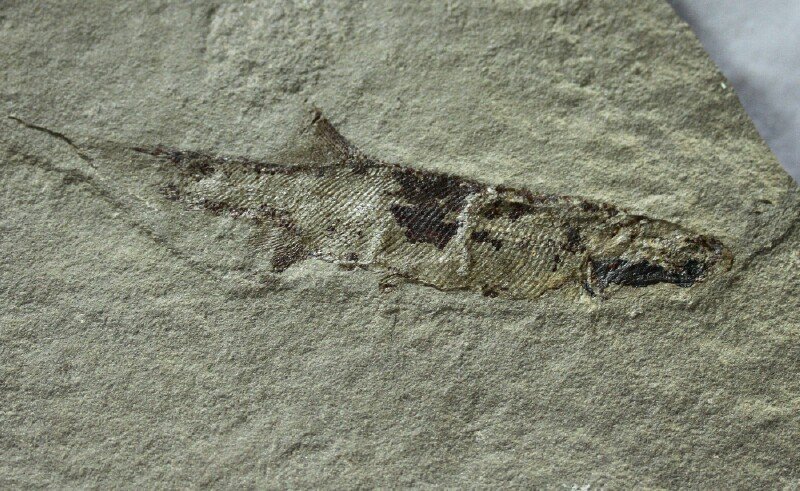 Kalops spClass Actinoptergyii, Order Paleonisciformes Geological Time: Mississippian (~320 m.y.a.) Size (25.4 mm = 1 inch): Fish fossil is 113 mm, Matrix: 155 mm by 210 mm Fossil Site: Heath Shale Formation, Bear Gulch Limestone, Fergus County, Montana Fossil Code: BGF561 Price: Sold |