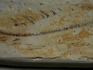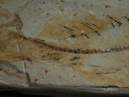 Amiiformes indetClass Actinoptergyii, Order Amiiformes Geological Time: Late Cretaceous, Cenomanian/Turonian Stage (~90 million years ago) Size (25.4 mm = 1 inch): Fish Fossil is 132 mm in length on a 175 mm by 73 mm matrix Fossil Site: Kem Kem Plateau, Morocco Code: 10020 Price: Sold |