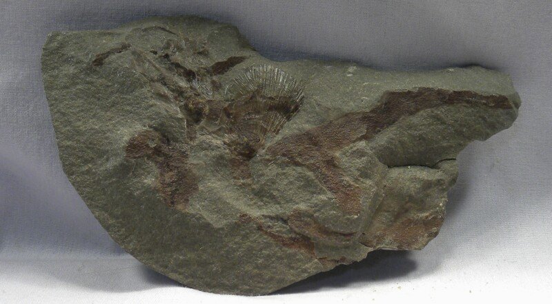 Arborispongia delicatulaPhylum Porrifera Aviculopecten spPhylum Mollusca, Class Bivalviaa Geological Time: Mississippian Size (25.4mm=1 inch): Sponge fossil: 80 mm, Bivalve fossil 25 mm by 20 mm across, Matrix: 75 mm by 140 mm Fossil Site: Heath Shale Formation, Bear Gulch Limestone, Fergus County, Montana Code: BGF487 Price: Sold |