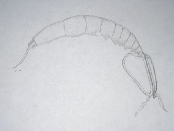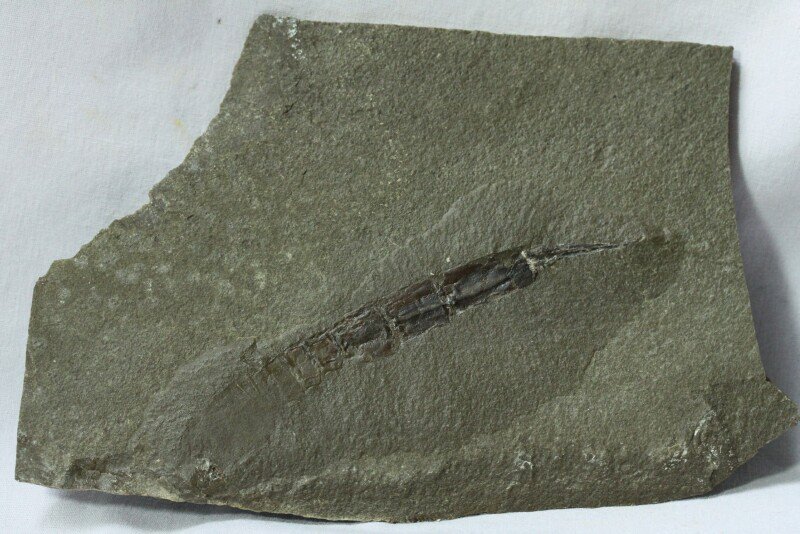 Sairocaris centurionPhyllocarida, Archaeostraca, Sairocarididae Geological Time: Mississippian (~320 m.y.a.) Size: Phyllocarid fossil is 105 mm long Fossil Site: Heath Shale Formation, Bear Gulch Limestone, Fergus County, Montana |