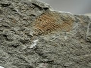 Aglaspis sp.Phylum Arthropoda, Class Merostomata, Order Aglaspida Age: Late Cambrian, (~500 million years old) Size: mm (25.4mm=1 inch): 20 mm long by 8 mm wide on a 75 mm by 35 mm matrix Fossil Site: Stony Point, Montagu, North Western Tasmania, Australia Fossil Code: AFF33 Price: $650.00 |