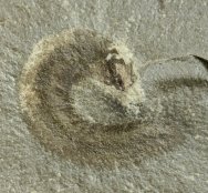 Polychaete Worm FossilPhylum Annelida, Class Polychaeta Geological Time: Mississippian (~320 m.y.a.) Size: Fossil is 70 mm long (curve measure) Matrix: 135 mm by 145 mm Fossil Site: Heath Shale Formation, Bear Gulch Limestone, Fergus County, Montana Fossil Code: BGF633 Price: Sold |