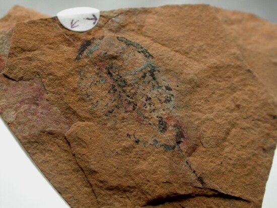 Lamellipedia (Trilobitomorpha); Emeraldellidae; cf Emeraldella (?)Geological Time: Upper Middle Cambrian Size: mm (25.4mm=1 inch): 34 mm long by 15 mm wide with 8 mm segmented antennae on a 70mm by 60 mm matrix Fossil Site: Weeks Formation, Millard County, Utah Code: UB138 Price: $650.00 |