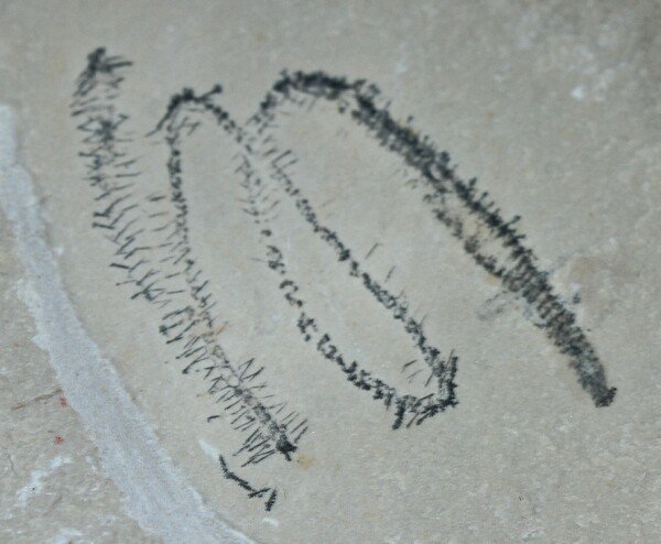 | Annelida indet Phylum Annelida, Class Polychaeta Geological Time: Middle Cretaceous, Lower Cenomanian Stage (95 million years ago) Size (25.4mm=1 inch): Worm fossil is 110 mm long (if straight) on a 58 mm by 75 mm matrix Fossil Site: Lebanese Lagerstatte, Hajoula, Lebanon Fossil Code: L584 Price: $235.00 |