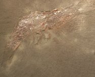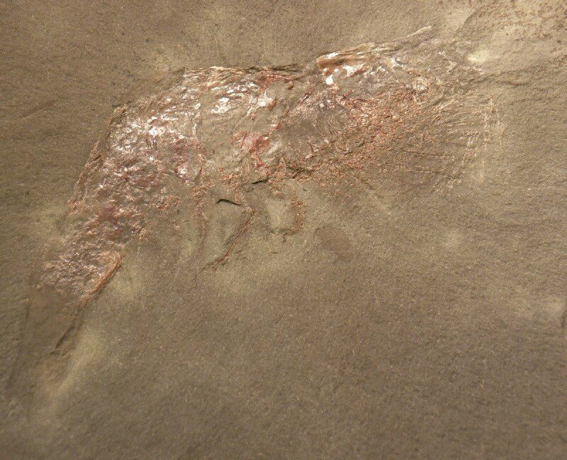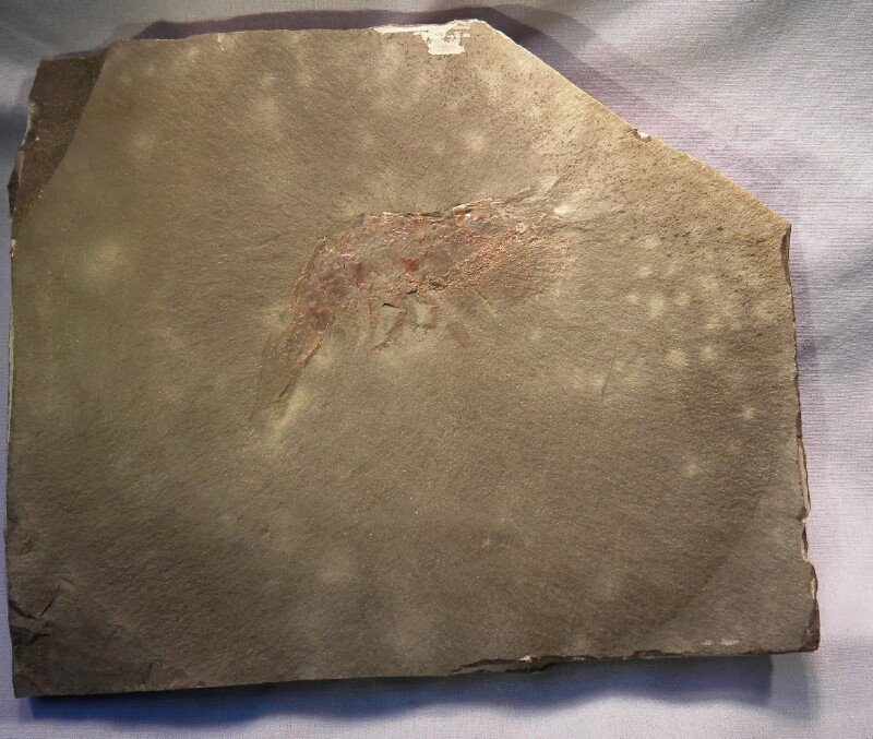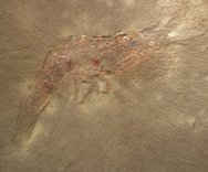 Aenigmacaris cornigerumSubphylum Crustacea, Class Malacostraca, Order Cardoida, Family Aenigmacaridae Geological Time: Mississippian (~320 m.y.a.) Size (25.4 mm = 1 inch): Shrimp fossil is 100 mm long (curve measure) Matrix: 150 mm by 180 mm Fossil Site: Heath Shale Formation, Bear Gulch Limestone, Fergus County, Montana Fossil Code: BGF196 Price: Sold |
