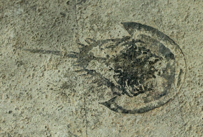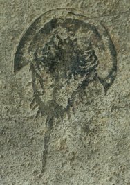 Yunnanolimulus luopingensisArthropoda, Xiphosaurida, Mesolimulidae Geological Time: Middle Triassic Size (25.4 mm = 1 inch): Fossil is 57 mm long by 35 mm wide Matrix: 150 mm by 120 mm Fossil Site: Guanling Formation, Luoping County, Yunnan Province of China Code: CF497 Price: Sold |