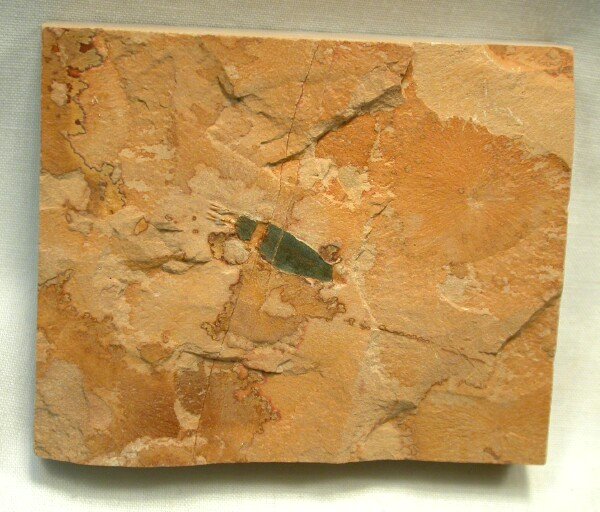 Incertae sedisPhylum Phoronida (?) Geological Time: Upper Middle Cambrian Size (25.4 mm = 1 inch): 17 mm long on a 50 mm by 60 mm matrix Fossil Site: Weeks Formation, House Range, Millard County, Utah Code: UB232 Price: Sold |
