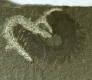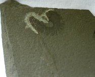 Annelida indetPhylum Annelida, Class Polychaeta Geological Time: Mississippian (~320 m.y.a.) Size (25.4 mm = 1 inch): Fossil is 50 mm long (curve measure); Matrix: 70 mm by 65 mm Fossil Site: Heath Shale Formation, Bear Gulch Limestone, Fergus County, Montana Fossil Code: BGF365 Price: $95.00 |
